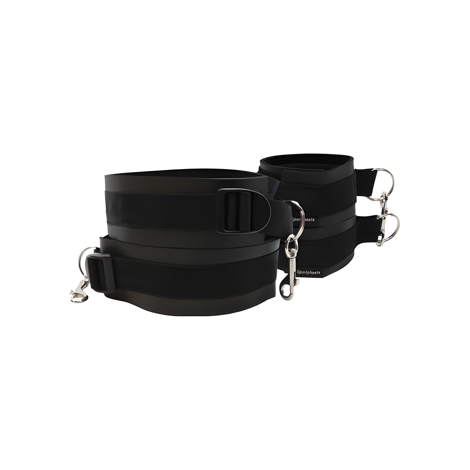 The wrist cuffs secure with Velcro and attach to thigh cuffs with eyehooks for a reliable hold.